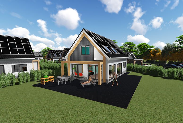 Nieuwbouw vakantiepark 11 recreatiewoningen met cenrtralevoorziningen gebouw op Texel aan de Pelikaanweg. Mooie moderne bungalows energie neutraal en behoudt van groen in de omgeving. Energie neutraal park.